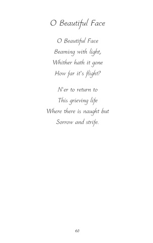 O Beautiful Face O Beautiful Face Beaming with light, Whither hath it gone How far it's flight? N'er to return to This grieving life Where there is naught but Sorrow and strife. 60