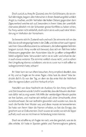 Doch zurück zu Anny. Ihr Zustand, eine Art Gefühlsstarre, die sie ein-